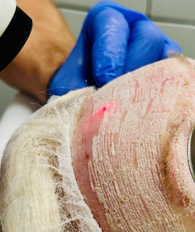 Le laser CO2 ultra pulsé s’adresse donc aux patients recherchant un traitement plus intensif avec un résultat durable, au prix d’une éviction sociale bien plus longue. (croutes une semaine , rougeurs 15-28j).