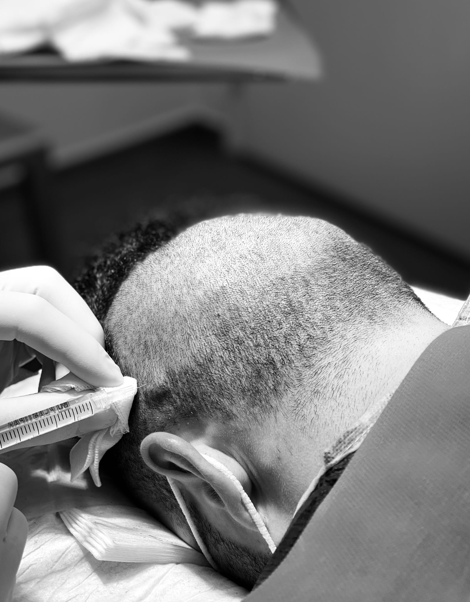 C’est également l’occasion de préparer l’intervention. Le Docteur Magis conseille par exemple une coupe courte sur les côtés et l’arrière, afin de faciliter le prélèvement et garantir un résultat esthétique optimal.