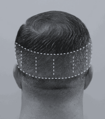 • Étudions la zone donneuse (souvent l’arrière et les côtés du crâne).